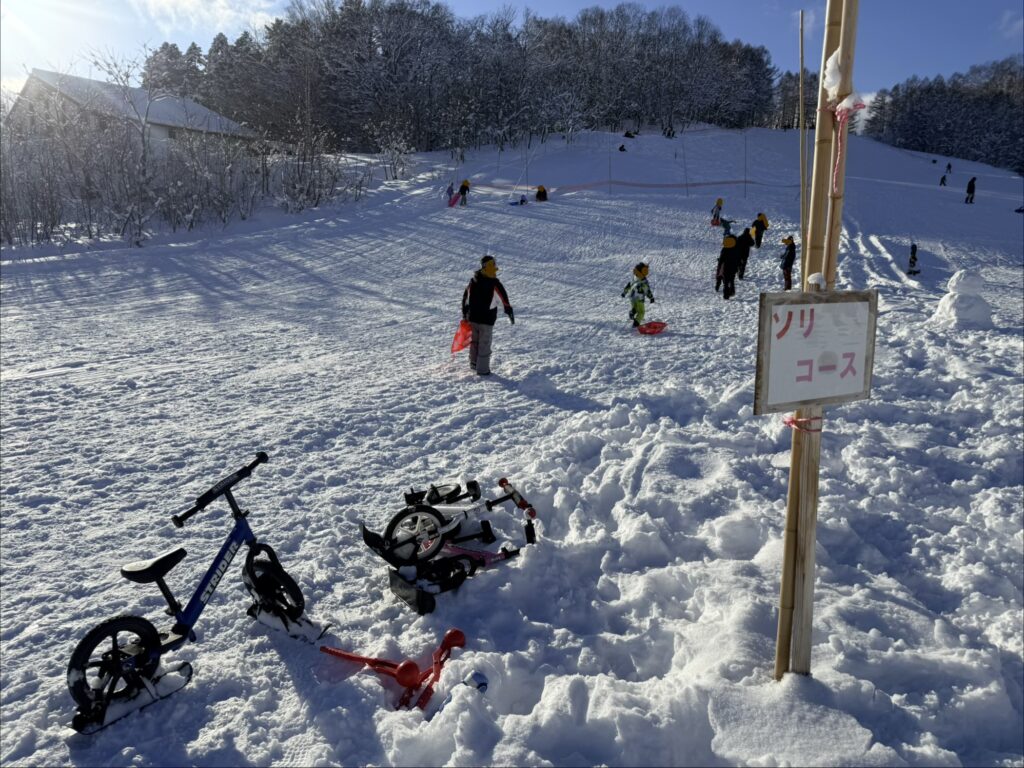 「ソリコース」の表示があり、子どもがソリを楽しめるエリアが分かりやすかったです。滑走エリアと分けられているのはありがたいポイントでした。