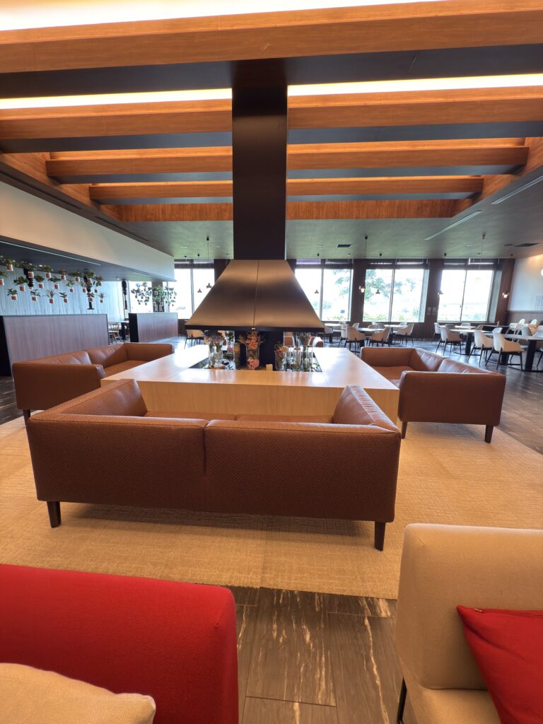 A. 室内の休憩スペースがあり、木のぬくもりが感じられて過ごしやすかったです。飲食の営業状況は日によって変わるため、現地掲示や窓口での確認が確実です。
