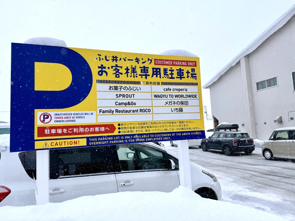 A. 私は「お菓子のふじい」の迎え側の駐車場に停めました。さらに、倶知安駅にも数台分の駐車スペースがあり、そちらも利用できました。