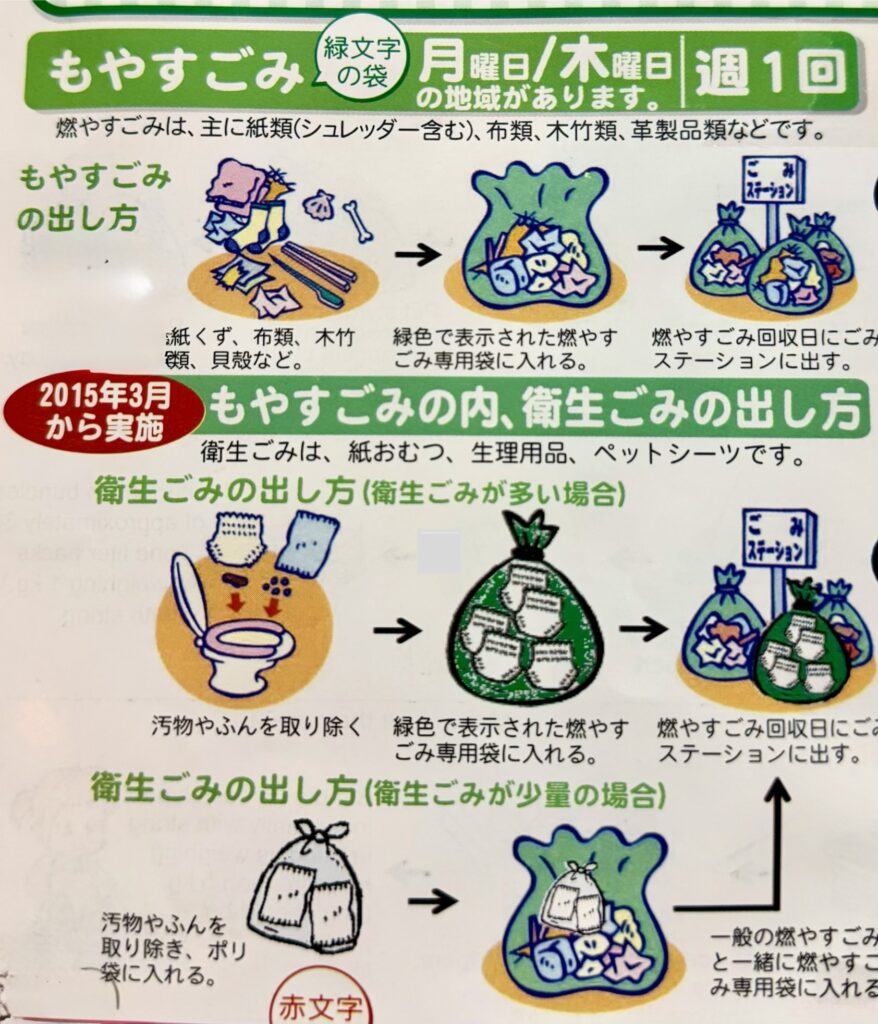 • 燃やすごみ(burnable):紙くずなど