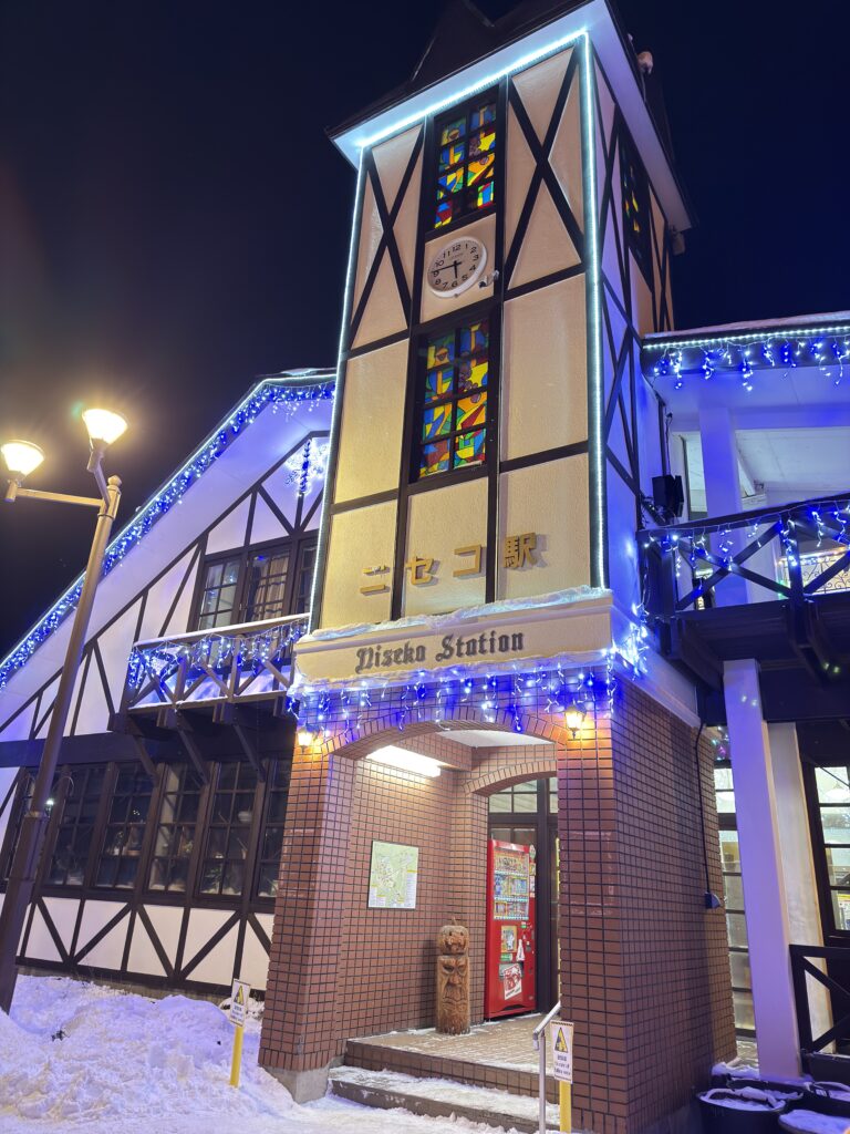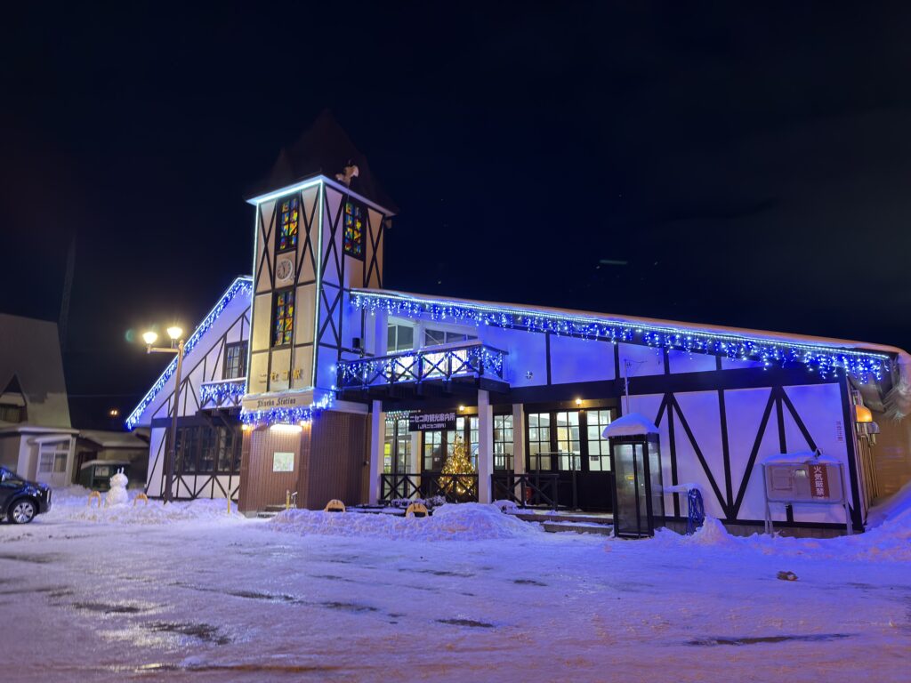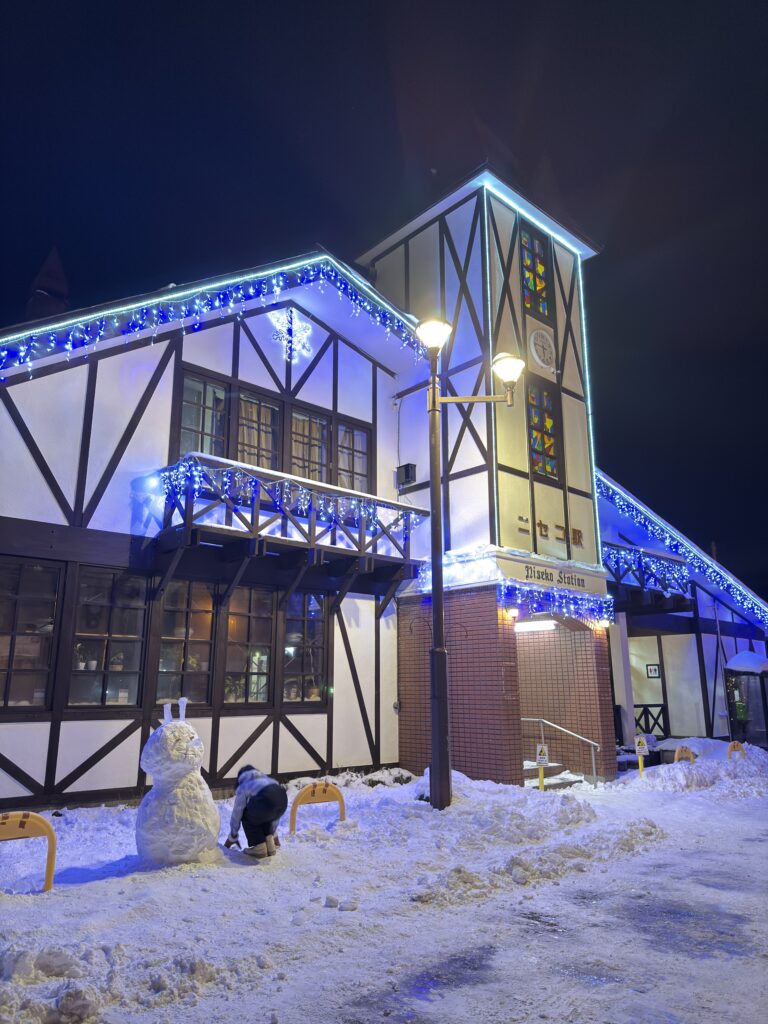 ニセコ駅のライトアップは、イルミネーションそのものに加えて、雪の反射や澄んだ空気が合わさることで、冬ならではの綺麗さが際立つ印象でした。