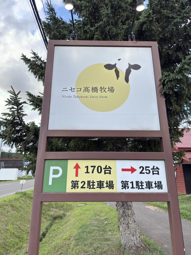 高橋牧場は、札幌から車で約2時間、小樽から約1時間30分、新千歳空港から約2時間です。JRならニセコ駅からタクシーで約10分。駐車場は第一駐車場30台、レストラン駐車場40台、第二駐車場160台で、大型バスは第二駐車場に駐車できます。観光の途中に車で立ち寄りやすく、荷物がある日や子連れでも動きやすいです。