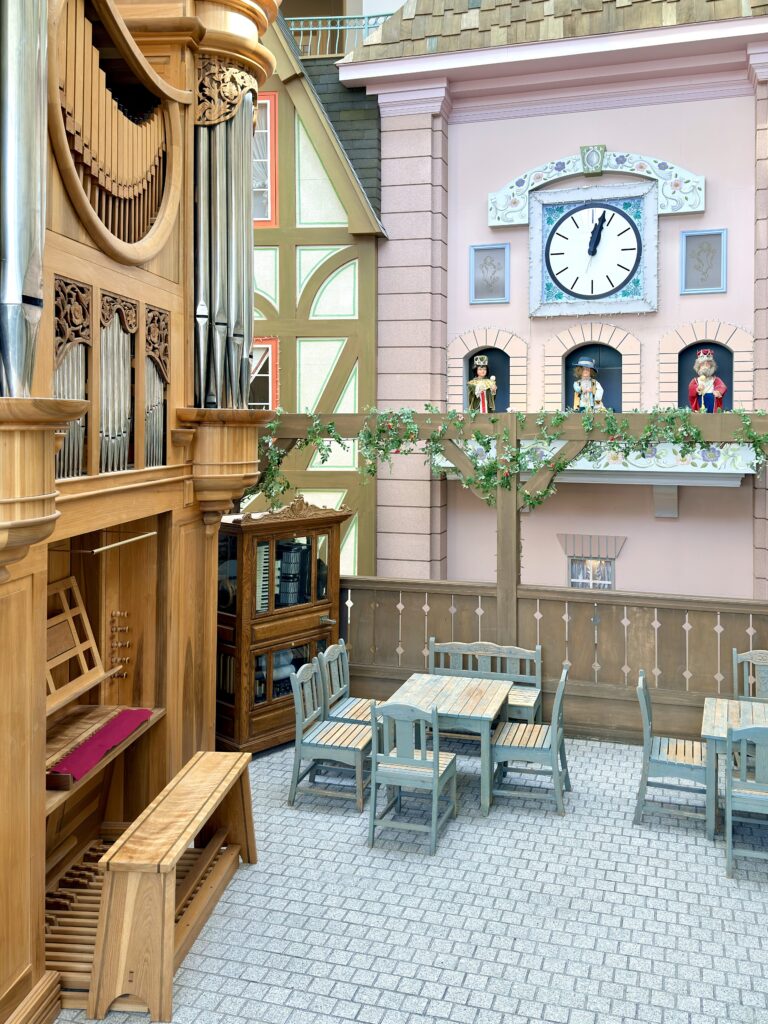 メリーゴーランドを抜けると、ヨーロピアンテイストな雰囲気に。看板やショップを眺めながら歩くだけでも楽しく、屋内おさんぽにぴったりでした。