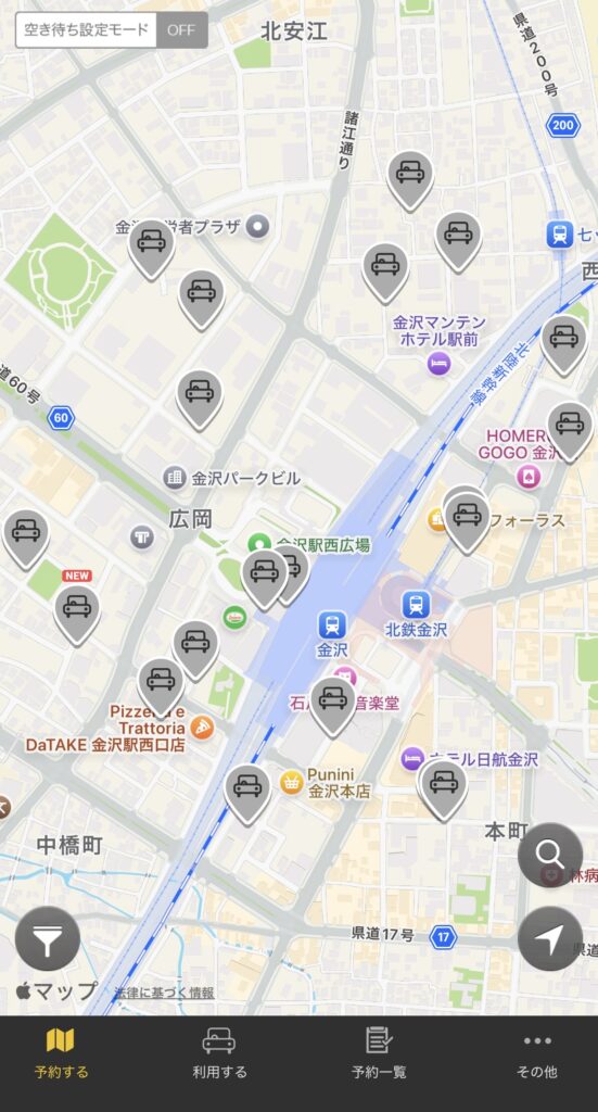 ニセコで入会したアカウントのまま、金沢旅行でも駅周辺のステーションを探して利用できました。